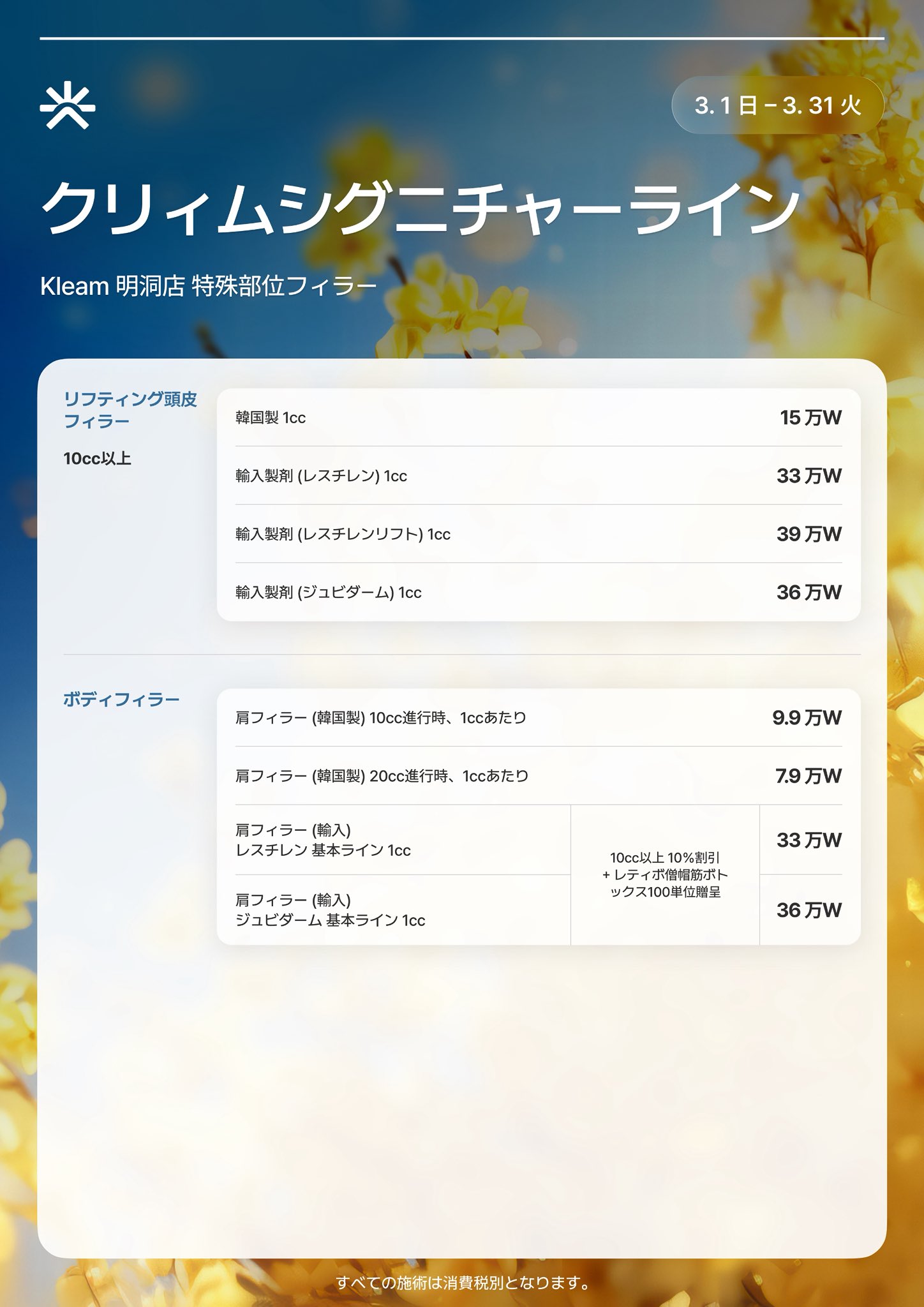 追加の消費税10%は含まれていません。